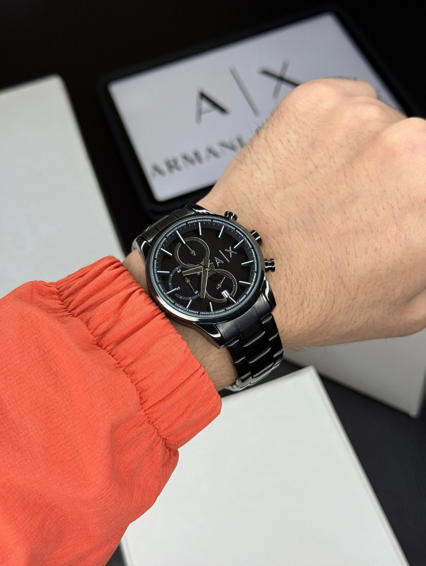All chronometers are fully functional, ensuring precise and reliable timekeeping for everyday use. Designed with a super premium finish, this timepiece reflects superior craftsmanship, durability, and attention to detail. The refined case, smooth contours, and high-quality materials give it a luxurious look that complements both formal and casual outfits. Built for long-lasting performance, it offers accuracy you can trust with a stylish presence on the wrist. The watch is delivered in an original brand name cardboard box, making it ideal for gifting or personal collection. A perfect blend of performance, elegance, and premium presentation for watch enthusiasts. Armani exchange emporio armani